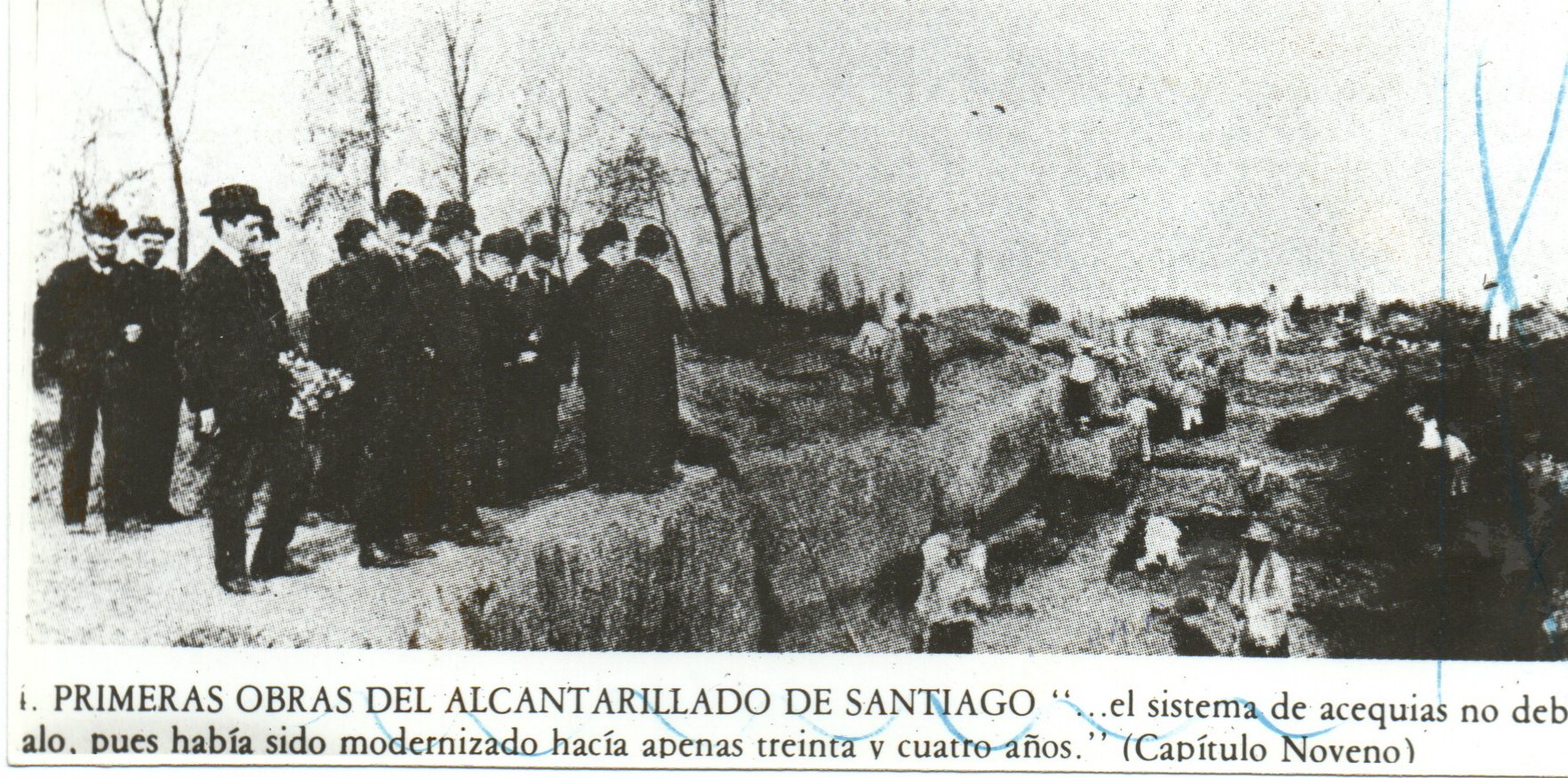 En la Fotografía se aprecia los trabajos realizados en las primeras obras del alcantarillado de Santiago.