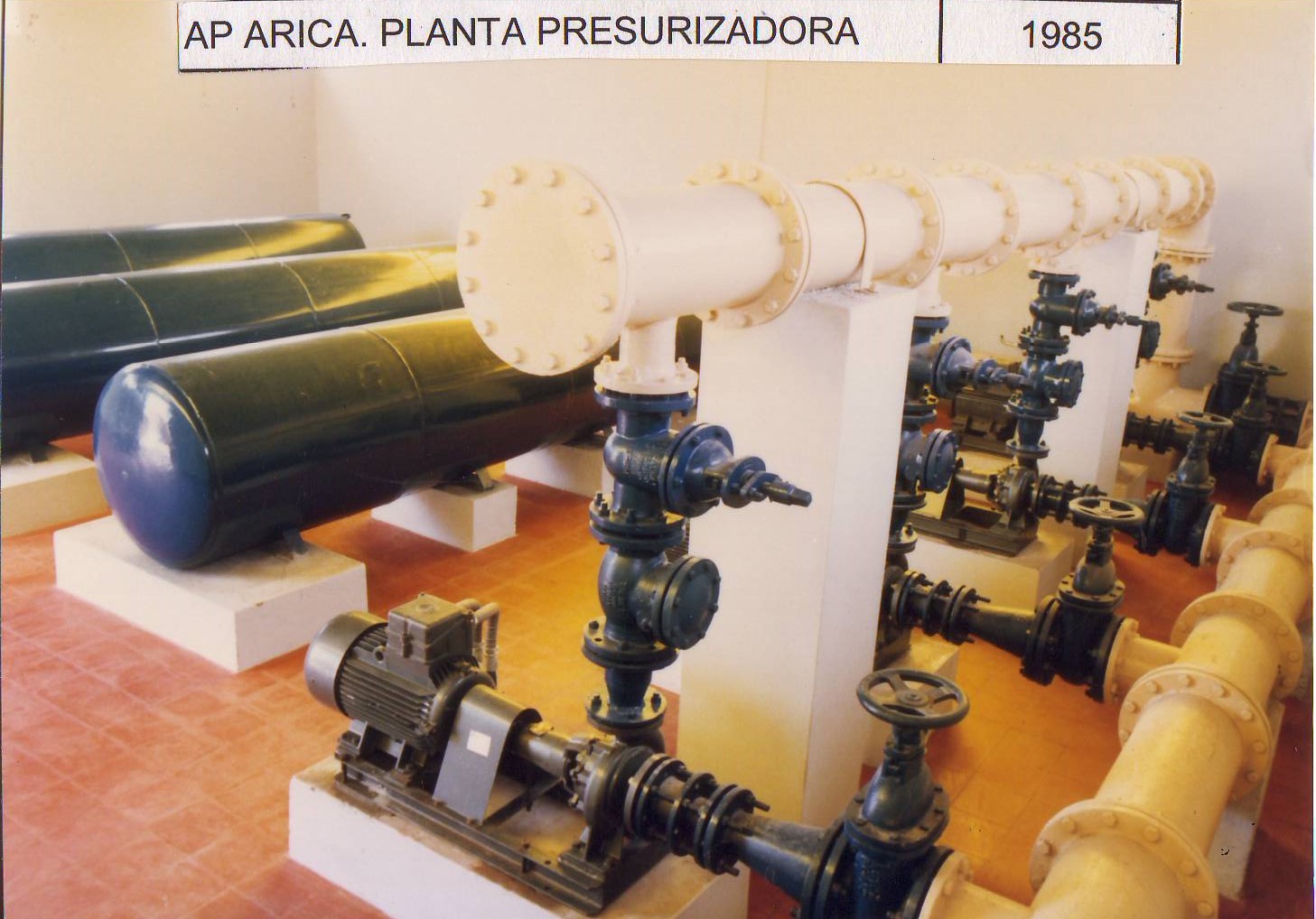 En la Fotografía se aprecia un primer plano de la Planta Presurizadora, en las instalaciones de Agua Potable en la Ciudad de Arica.