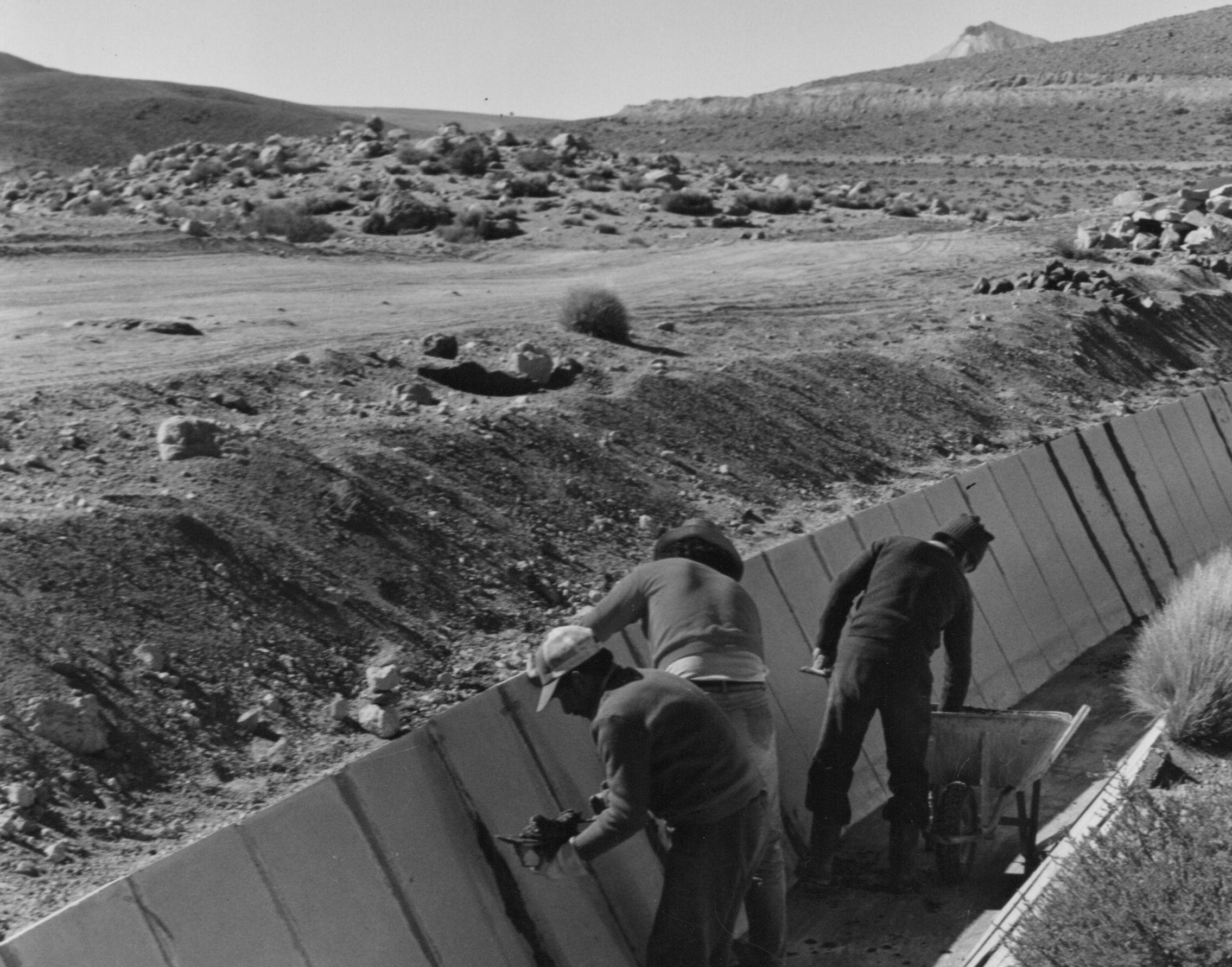 En la Fotografía se aprecia trabajos de revestimiento del Canal de Regadío del Valle Azapa en la Región de Arica y Parinacota.